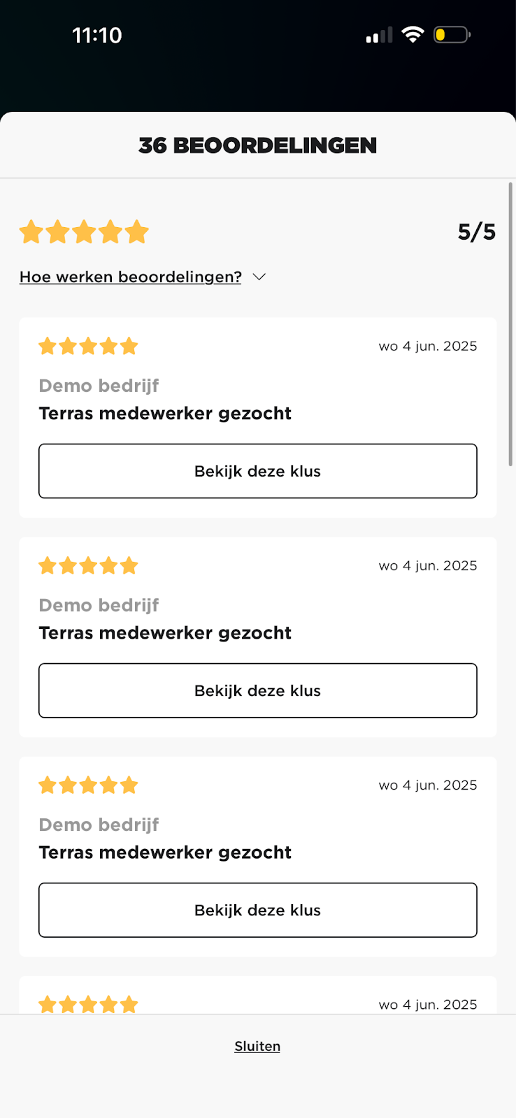 The rating system works as follows: After every gig, both you and the client can give each other a rating. Using a star system, you and the client can rate one another. In this system, one star is the minimum and five stars is the maximum rating. In addition to the score, you can also provide an explanation. Both the rating and the explanation will be visible to both parties